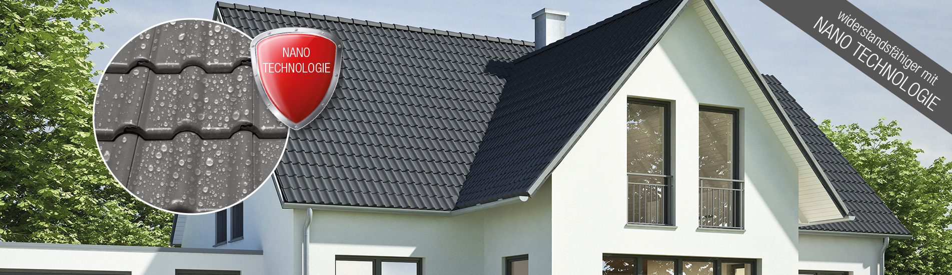 Durch die besondere Nano-Technologie, die tief in den Dachstein eindringt, wird bei Regen das Wasser schneller transportiert und das Eindringen von Schmutz und Feuchtigkeit in die Ziegel effektiv verhindert. Der sogenannte Lotus-Effekt setzt ein und das Dach reinigt sich wie von selbst.