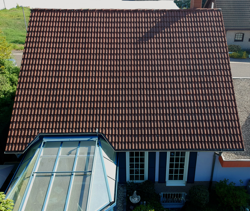 Nach der Reinigung Empfehlen wir Betonziegel zu beschichten, da nun die durch Erosion gelittene Oberfläche nicht nur unästhetisch aussieht, sondern komplett offenporig und über keinerlei Schutz vor kommenden Wettereinflüssen verfügt. Eine Imprägnierung wäre hier die falsche Wahl, da sie keinerlei optische Veränderungen erzielen würde und nur einen kurzen Schutz bietet, denn das Material bleibt immer noch sehr rau und offenporig. Den gewünschten optischen Effekt und perfekten Schutz erzielt man also nur mit unseren speziellen Dach-Beschichtung-Farben.