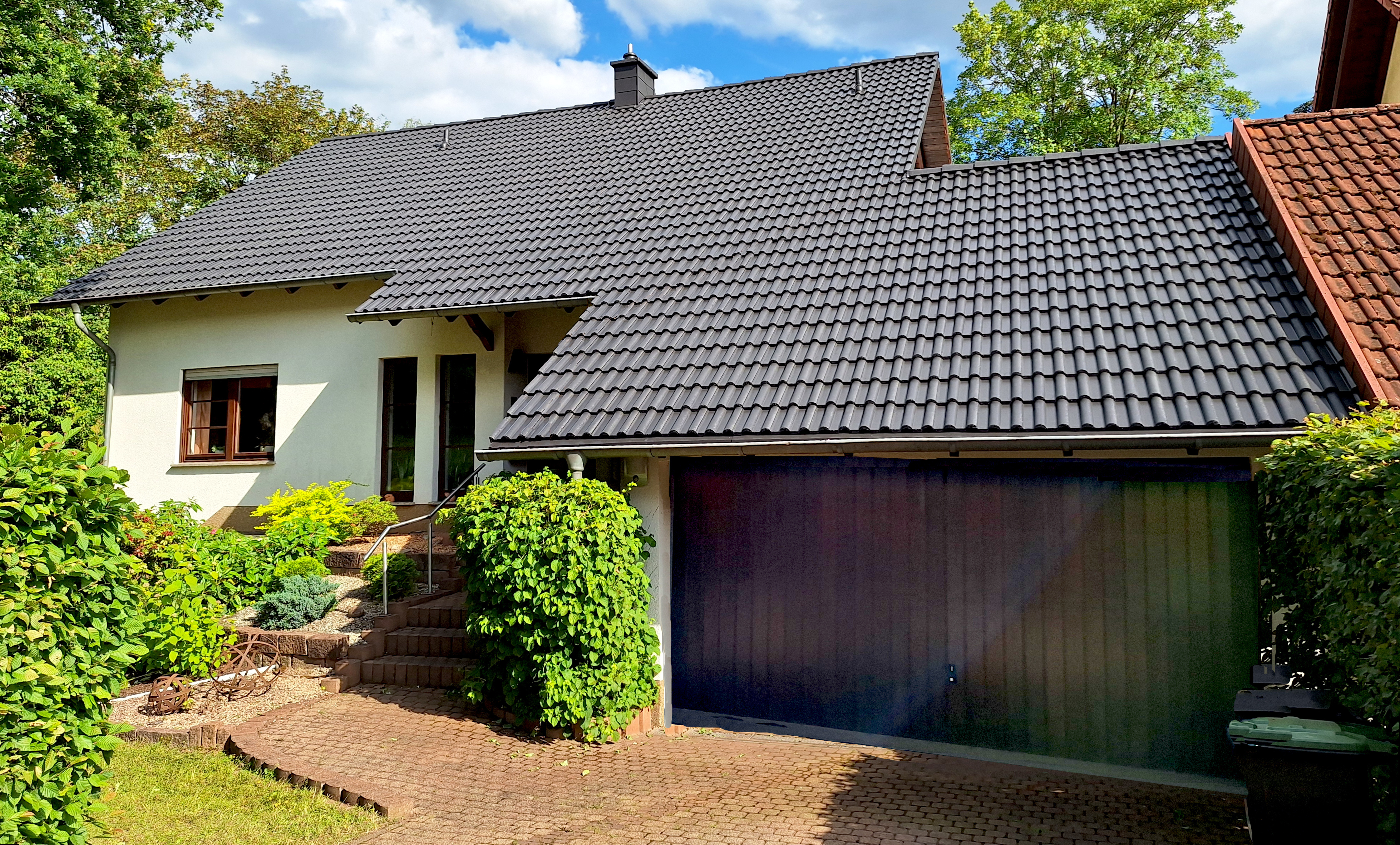 Nach der Reinigung Empfehlen wir Betonziegel zu beschichten, da nun die durch Erosion gelittene Oberfläche nicht nur unästhetisch aussieht, sondern komplett offenporig und über keinerlei Schutz vor kommenden Wettereinflüssen verfügt. Eine Imprägnierung wäre hier die falsche Wahl, da sie keinerlei optische Veränderungen erzielen würde und nur einen kurzen Schutz bietet, denn das Material bleibt immer noch sehr rau und offenporig. Den gewünschten optischen Effekt und perfekten Schutz erzielt man also nur mit unseren speziellen Dach-Beschichtung-Farben.
