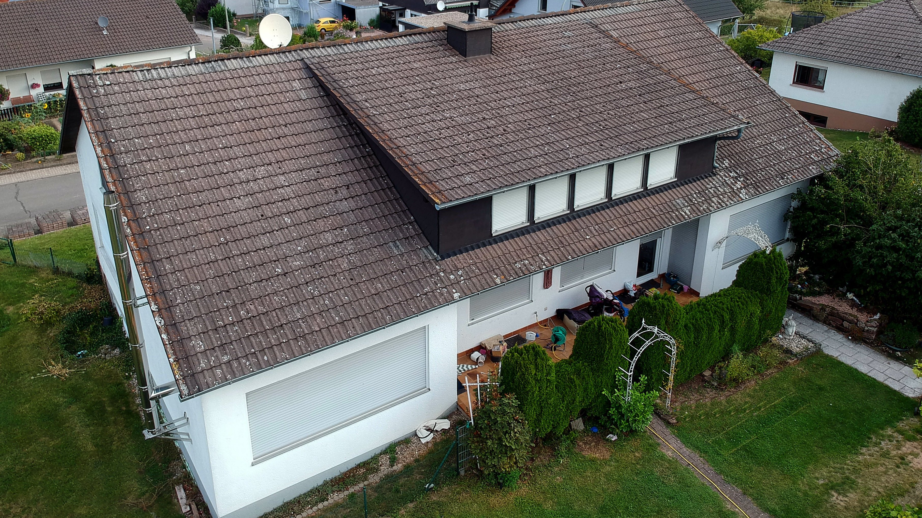 Wir Reinigen die Betonoberfläche mit einem Speziellem Dachflächenreiniger, mit Hochdruck von ca. 270 bar und bis zu 95 Grad heißem Wasser. So entfernen wir gründlich jeden Schmutz, Moose, Algen, Pilze und Flechten. Durch die besonderen Eigenschaften des Reinigers, der einen effektiven Spritzschutz bietet und sehr schonend die Dachziegel reinigt, wird ein hervorragendes Ergebnis erzielt, ohne die Fassade, das Grundstück oder die Häuser der Nachbarn zu verschmutzen, wie es z.B. beim arbeiten mit normalen Fräsen vorkommt. Wir haben nun die perfekte Basis für die Beschichtung spezieller Dachfarben, die in verschiedenen Farben erhältlich ist geschaffen.