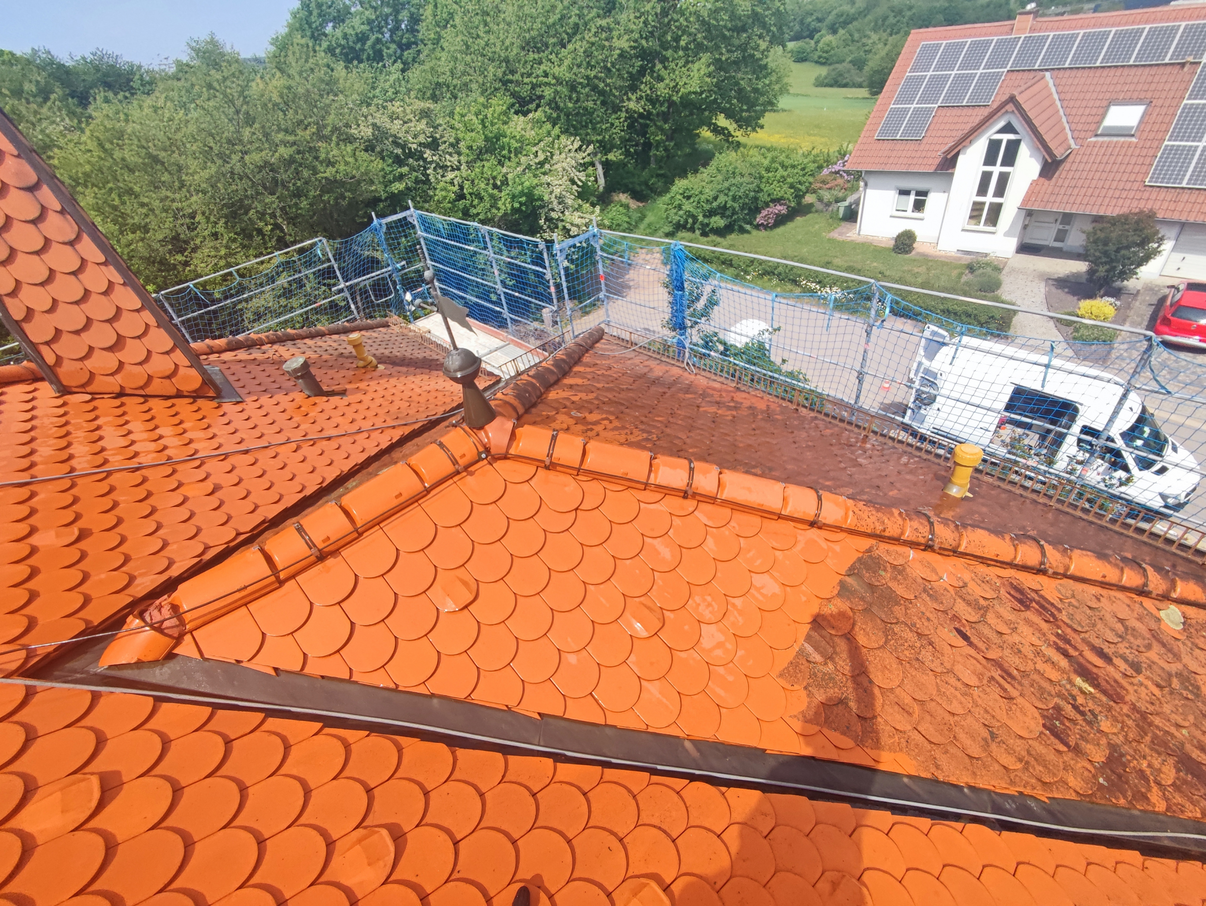 Das Dach ist nun perfekt gereinigt und strahlt im selben Farbton, als sie es neu eindecken ließen.
